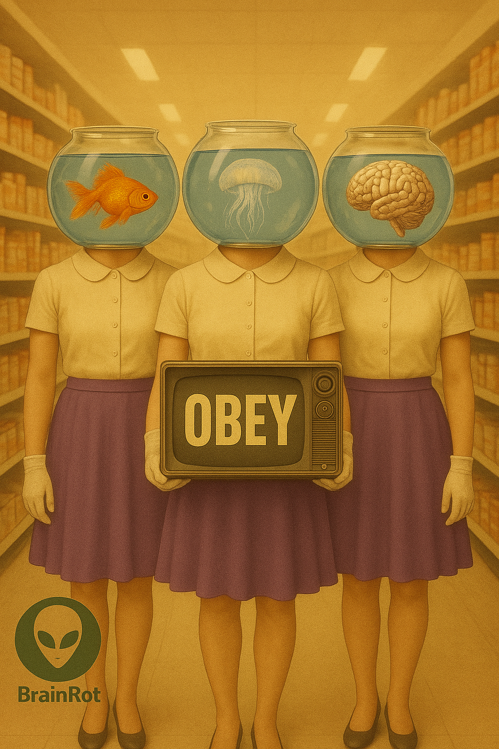 give them fish tanks for heads instead of TV's. Have the tanks have different fish such as a gold fish, a jellyfish, and a brain. change their skirts to purple. | Brainrot Research